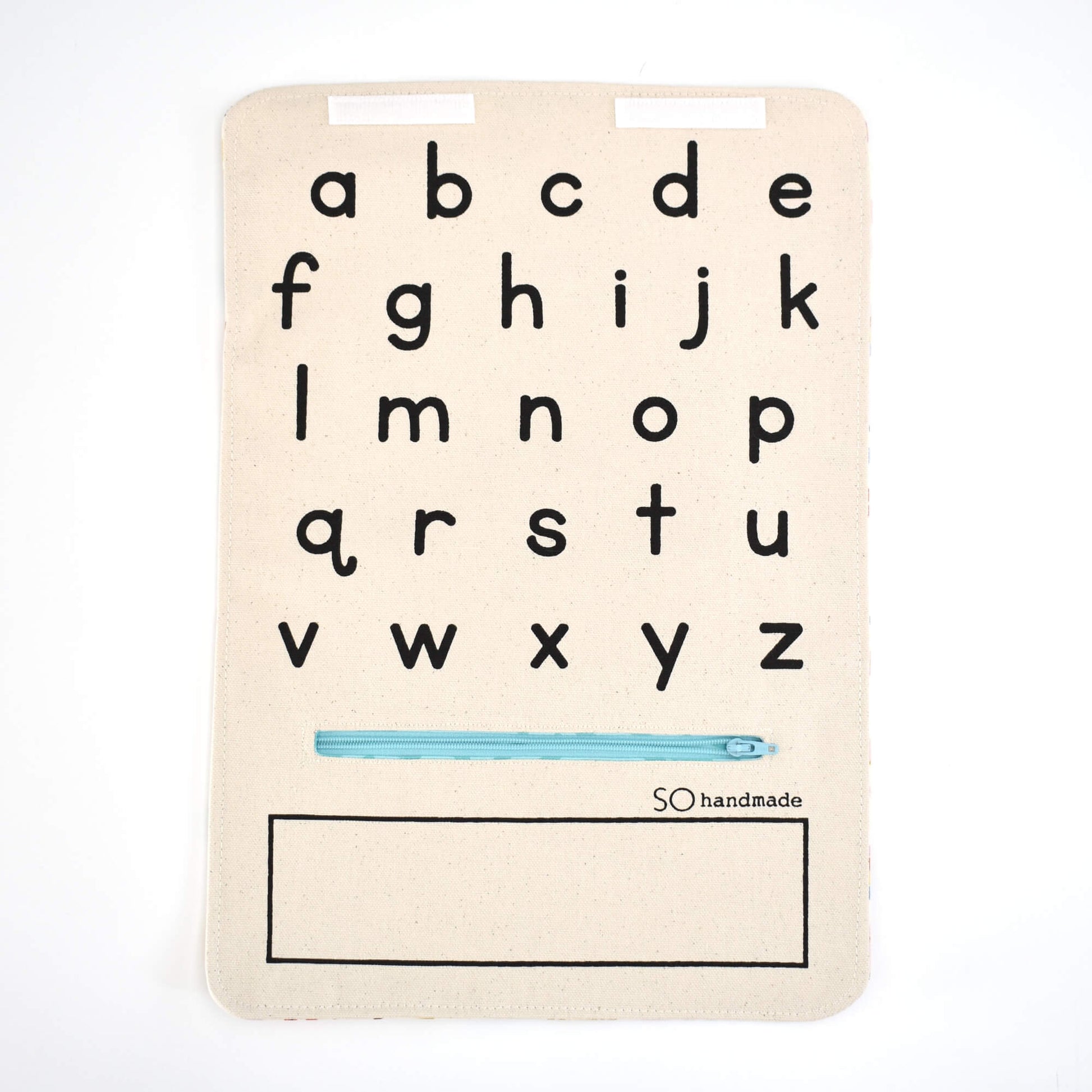 - ๐ Turquoise zip pocket with alphabet lining for tidy storage