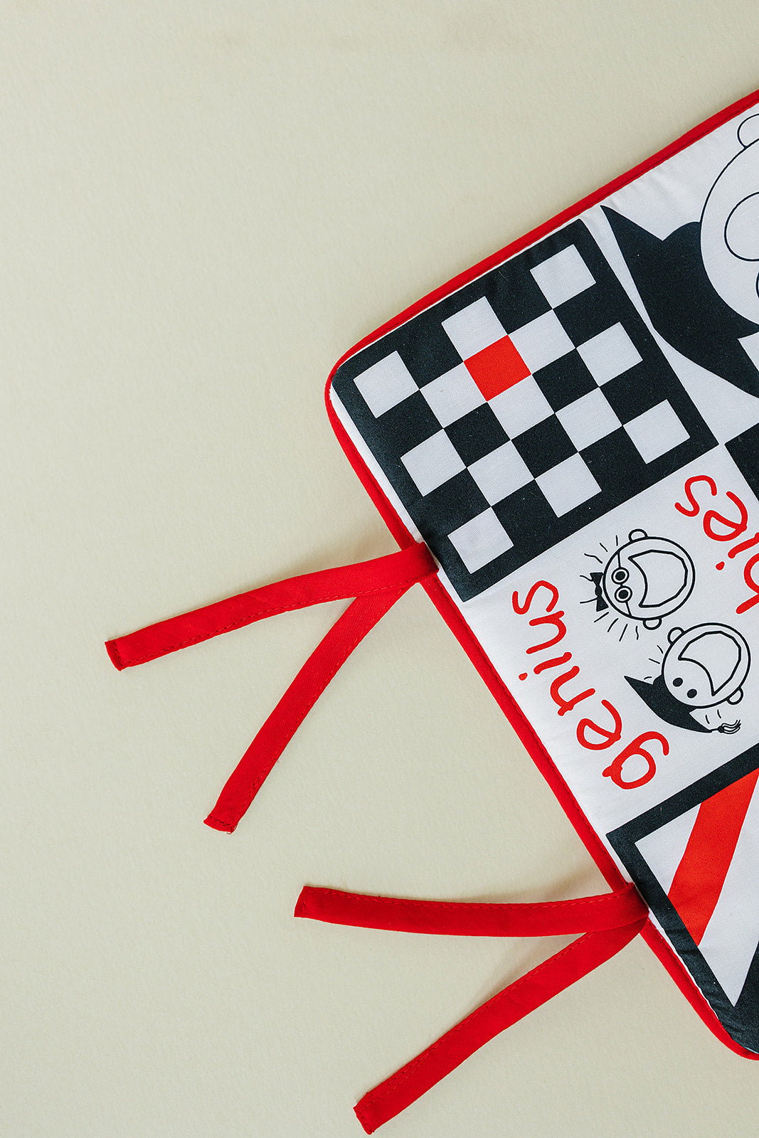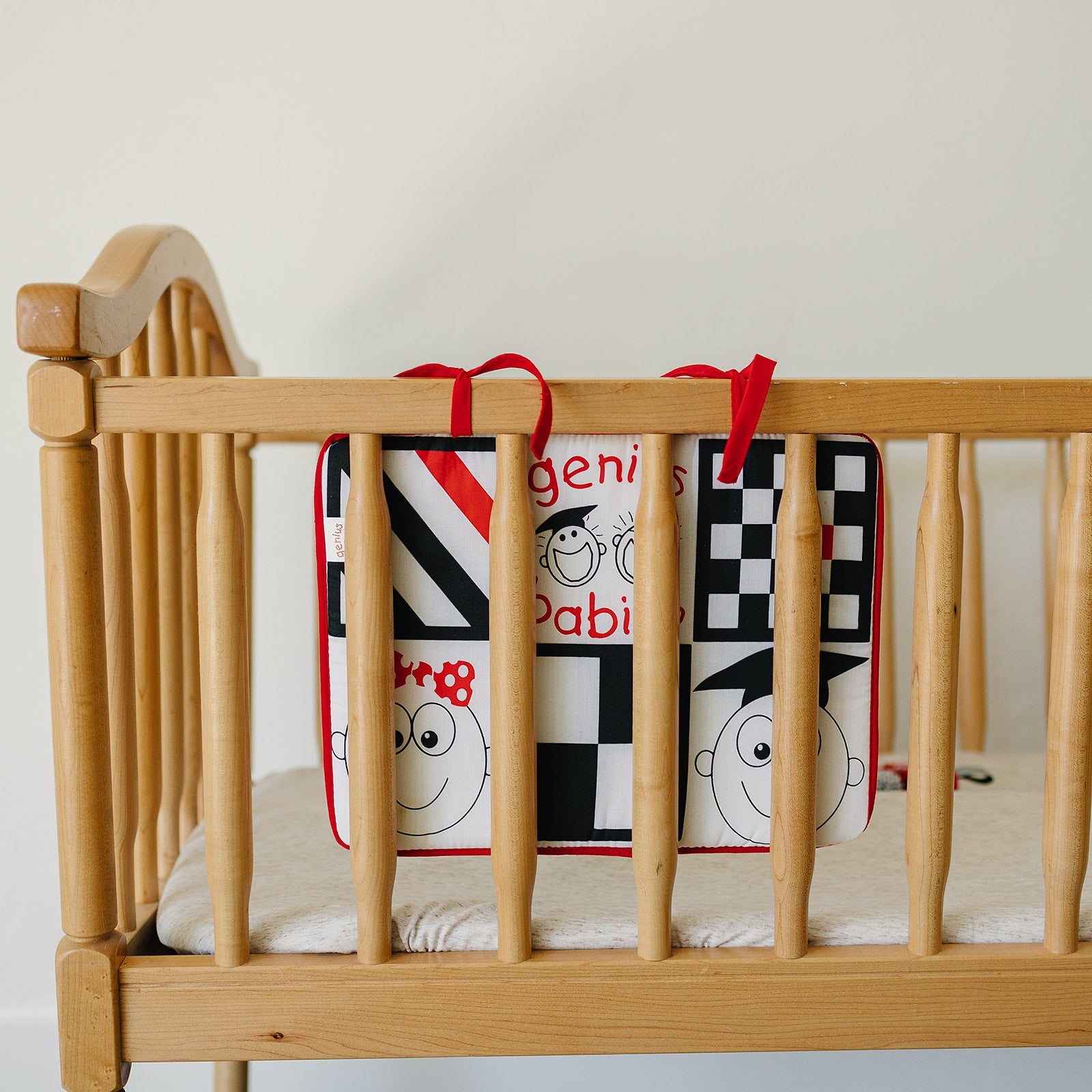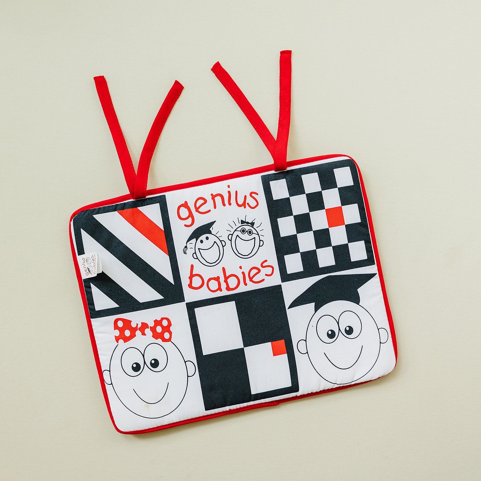 - Flip this baby mirror around to show your Genius Baby high contrast graphics in black, white and red graphics to help baby develop visual focus and tracking.