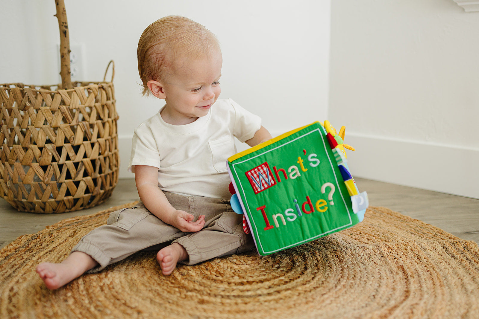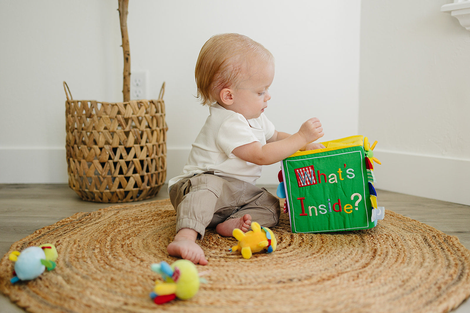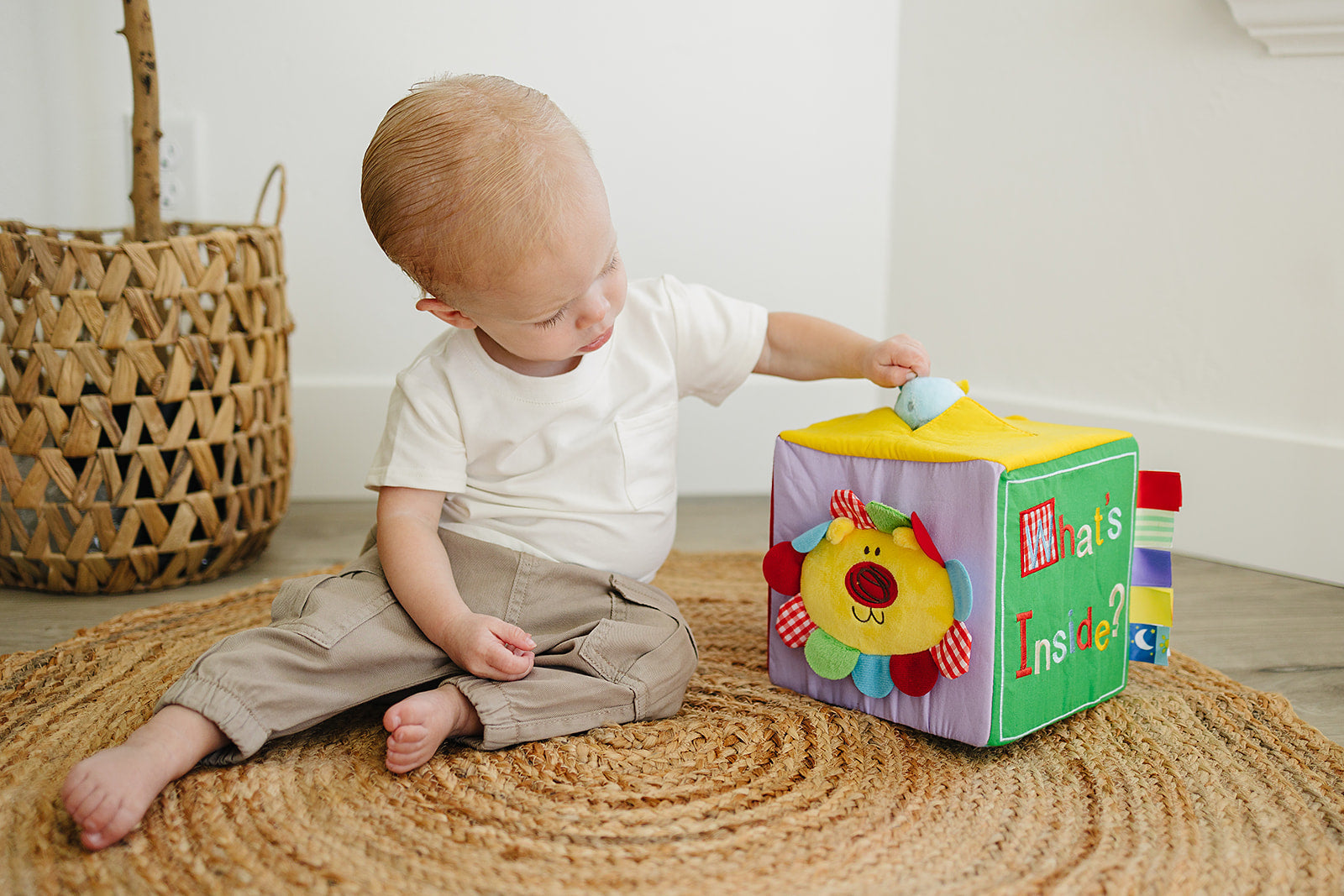 Each toy in this 'What's Inside Box' offers a unique sensory experience. Some toys crinkle, some rattle, and others even have a baby-safe mirror to peak your baby's interest. These sounds and reflections will teach your baby to grasp and learn object permanence, engaging their senses and encouraging play.