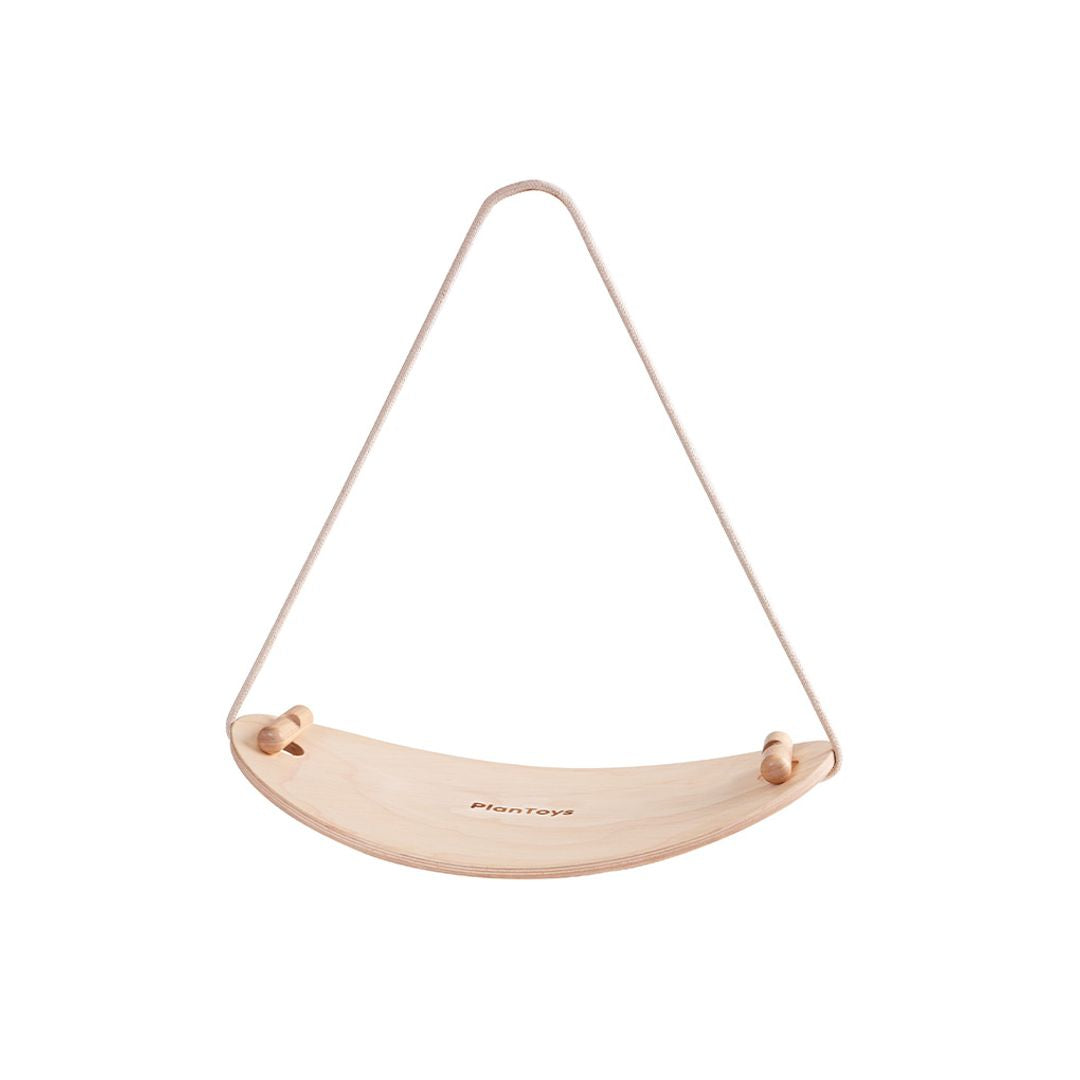 - Includes a curved sustainable wooden board and rope for stability