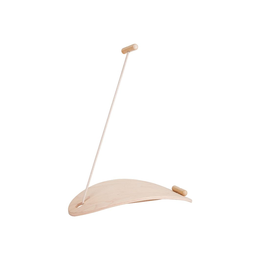 Discover various ways to balance by yourself! This toy comes with a curved plywood board and rope that help children learn to balance by standing up, sitting down, rocking back and forth. Great for developing physical strength and body control.