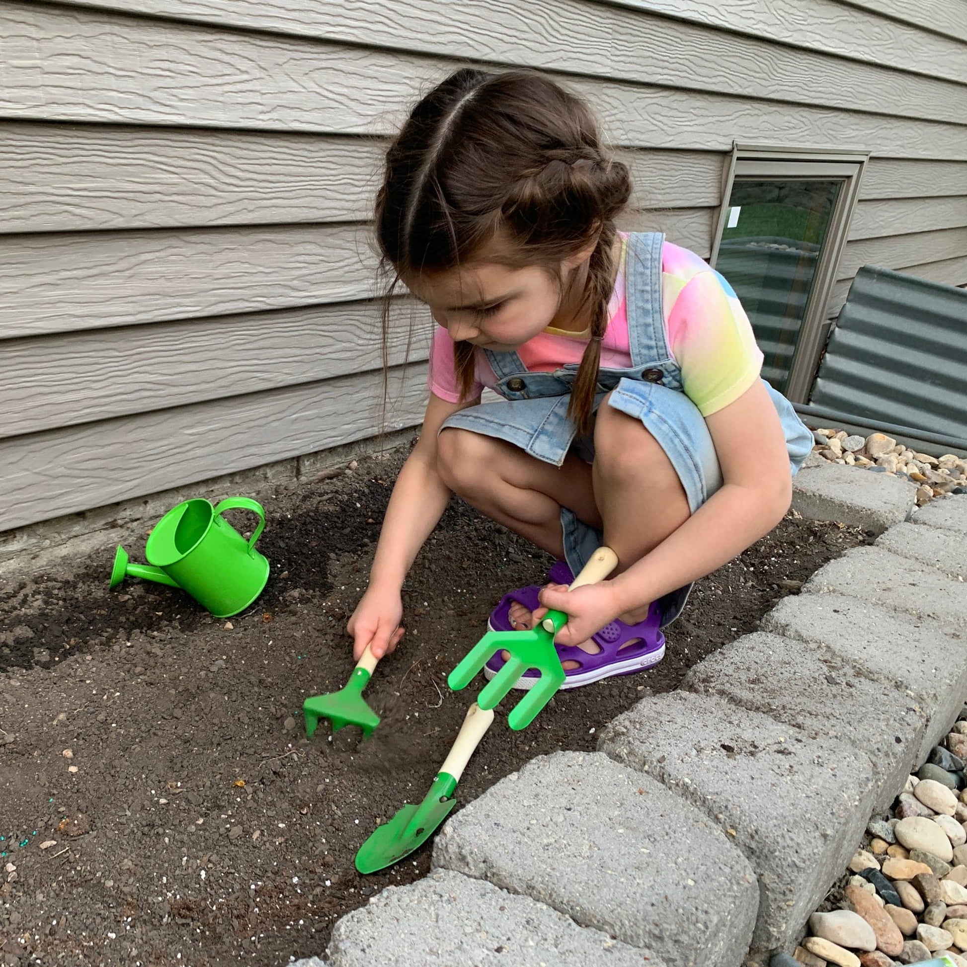 Cultivate young minds and bodies with this child-friendly gardening set. The handy, hardy tote bag carries implements needed to start a plot – child-sized spade, fork, rake, and real metal watering can. Tools include wooden handles and metal ends.