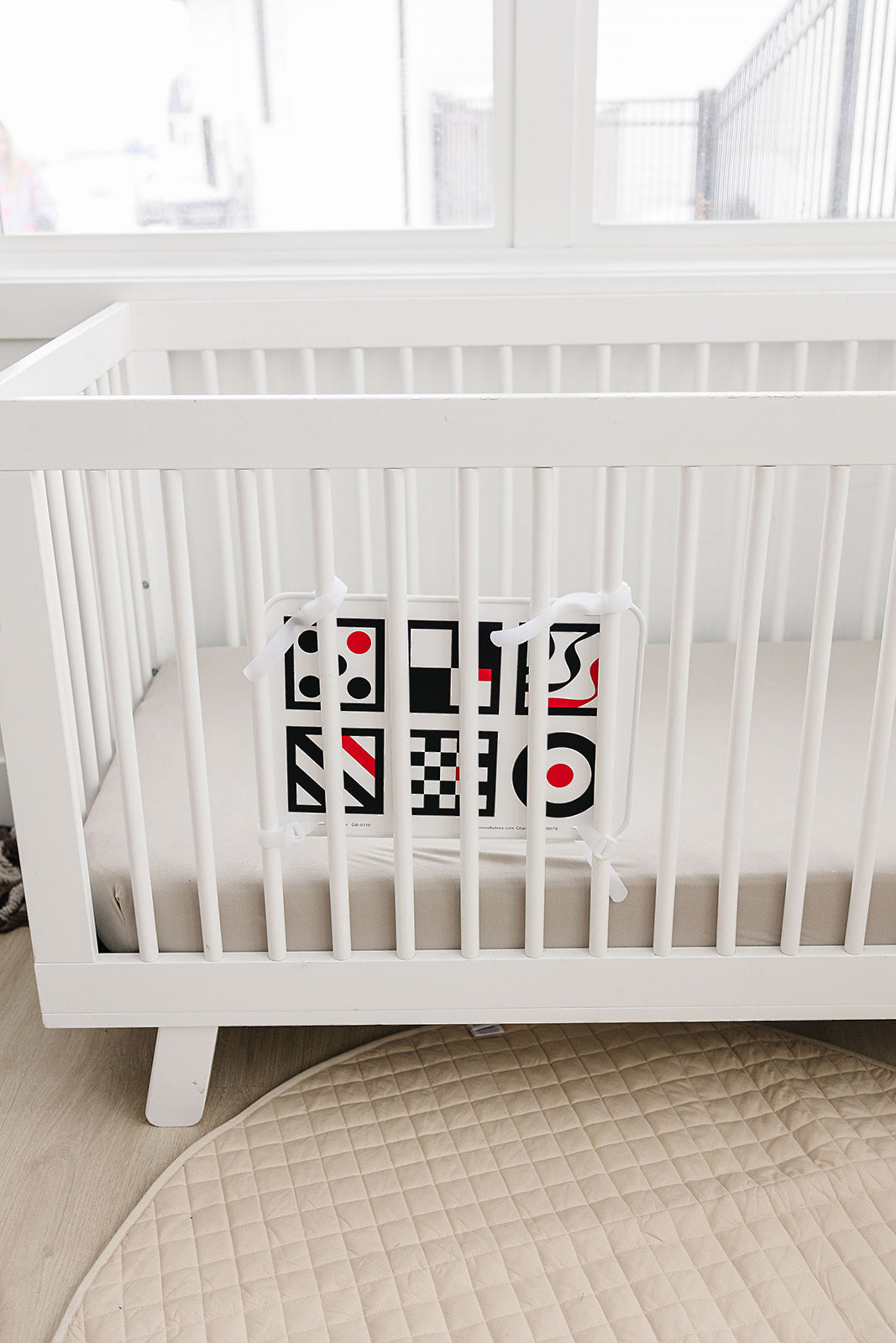 Details: We designed this baby safe mirror after hospitals and health care organizations repeatedly approached us on how to create a baby mirror that could be used in the NICU. After much research and development, we created this large, shatterproof baby mirror. Using hospital grade rubber edges and a shatterproof material for the mirror itself, this product has stood up to testing and remains our most popular baby mirror. Not only does this mirror for baby surpass safety testing standards, it also is an educational and fun toy for baby. Did you know babies love mirrors? They're fascinated by faces and reflections, even though they don't always know the face staring back at them is their own! Upon birth, babies have blurry vision. They can see the outline of faces and will start to recognize the shapes they see in faces. Flip this crib mirror around and the other side has high contrast graphics in black, white and red, the first three colors that your baby will see best. We also created this baby mirror with busy and sleep-deprived parents in mind. That's why we made this mirror for baby super easy to attach to the crib: just use the four adjustable velcro straps included. It'll take one minute then you can move on to spending time with your Genius Baby.