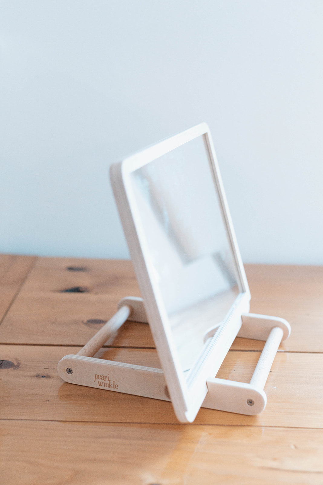 Mirror recognization is a favorite activity for babies and toddlers. A mirror is a staple Montessori item for a baby to see an adorable face looking back at them and great to extend tummy time. The Mirror and Stand combo can be flipped around, add some black and white cards to stimulate your baby's vision and extend their important tummy time.