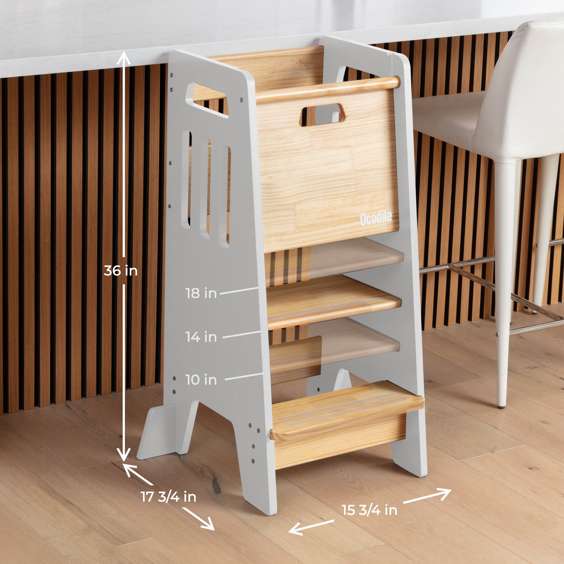This toddler tower is designed to empower children with independence, allowing them to climb up on their own and join in on kitchen and household activities. Its thoughtful design makes it easy and safe for little ones to engage, explore, and learn right alongside you.