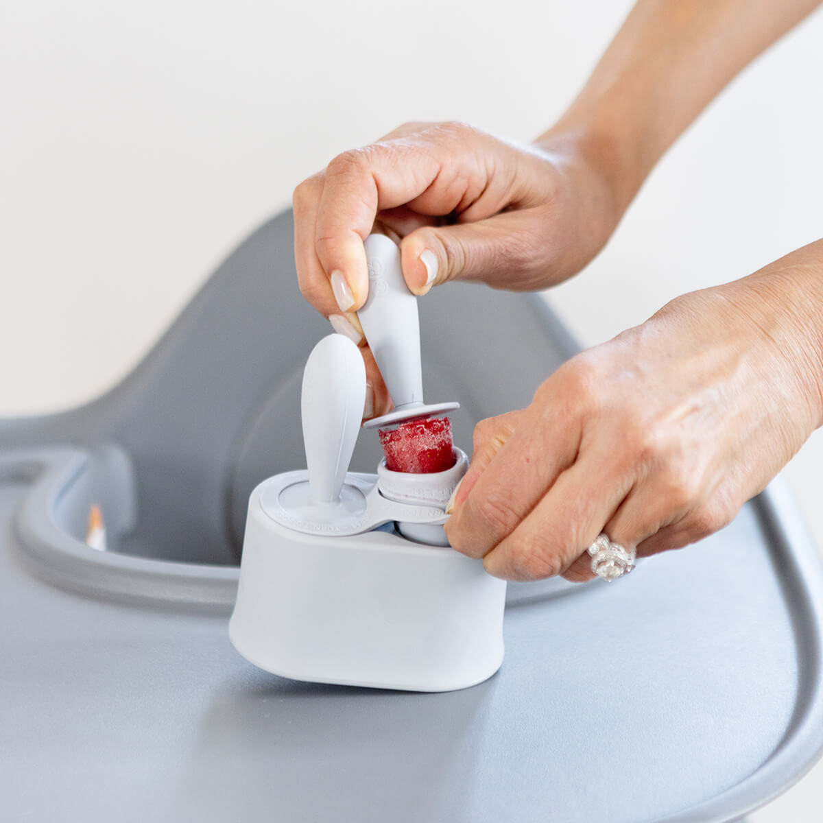 ezpz’s #1 selling item, Tiny Pops, times 2! Tiny Pops are portion-sized at ½ oz and have a short, fat, round handle for baby’s grasp. To use, simply freeze breast milk, formula or a smoothie for 2-4 hours and (voila!) your baby has nourishment and a treat for their senses!